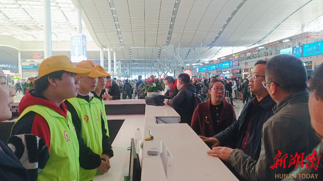 长沙南站候车室人声鼎沸,春运的热闹气息扑面而来。候车的旅客们手提肩背,大包小包的行囊中满载着归家的喜悦。一群身着志愿服的湖铁学子,如美妙灵动的音符,活跃在各个角落。他们或是为旅客精准指引路线,或是贴心协助老弱病残,用真诚的微笑和专业的服务,为旅客排忧解难。