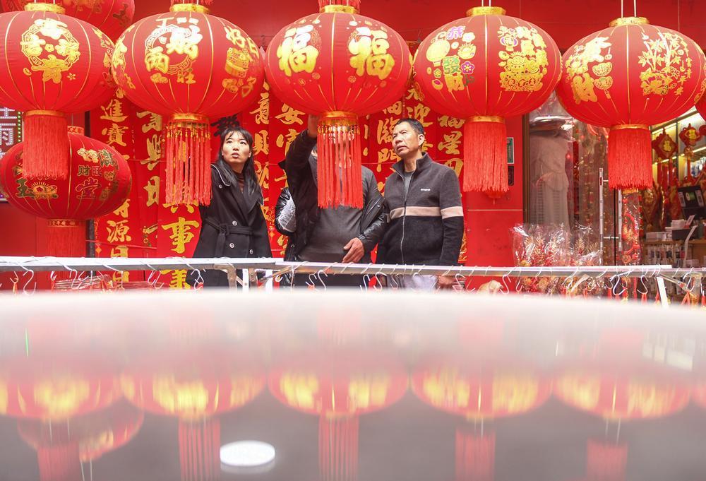 蛇年春节将至,各地张灯结彩,人们选购年货,参加各种喜庆活动,欢欢喜喜迎新春。