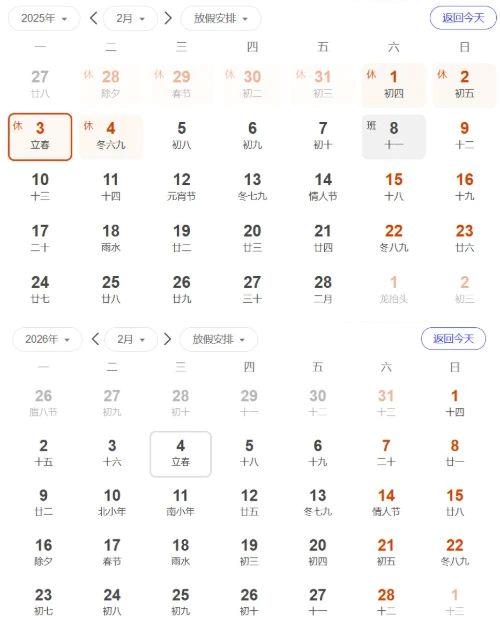 △本次蛇年两个立春的时间