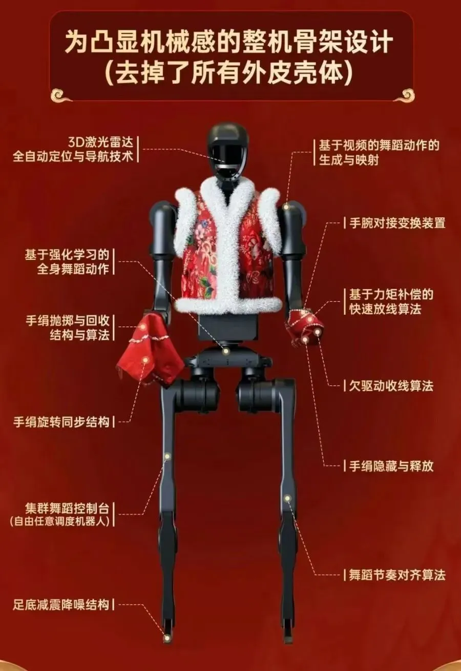 节目中,穿上红色大花袄的机器人会变换队形、舞动身体,还会多角度转手绢。