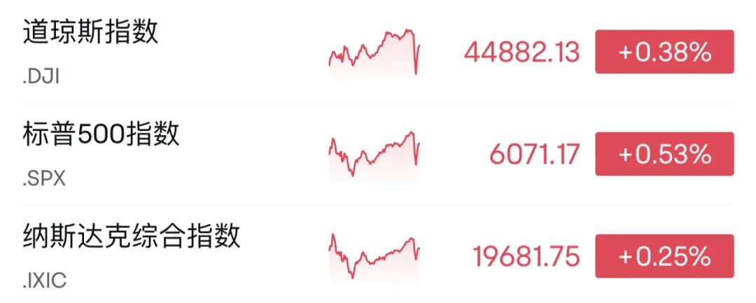 当地时间1月30日,美股三大股指小幅高开,盘中窄幅震荡,尾盘小幅跳水,一度翻绿,随后又小幅收涨。截至收盘,道指上涨0.38%,报44882.13点;标普500指数涨0.53%,报6071.17点;纳指涨0.25%,报19681.75点。