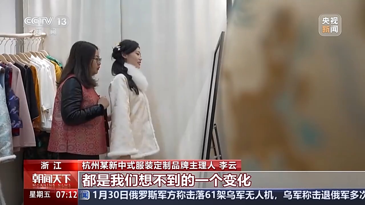 浙江消费者 刘钊君:因为我们中华民族自古就有衣冠上国的称呼,在新年能够定制这种衣服穿着,也代表的是我们自己对文化的一种认同感和自信。