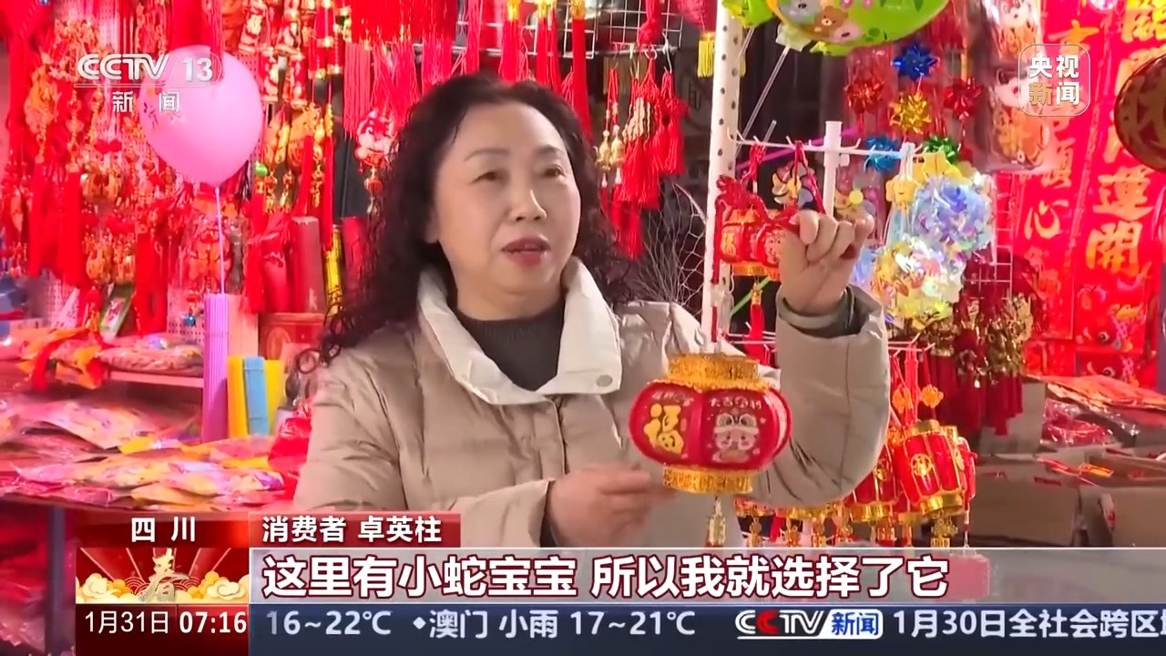 四川消费者 卓英柱:这里有小蛇宝宝,所以我就选择了它,为我们家增添喜庆的气氛。