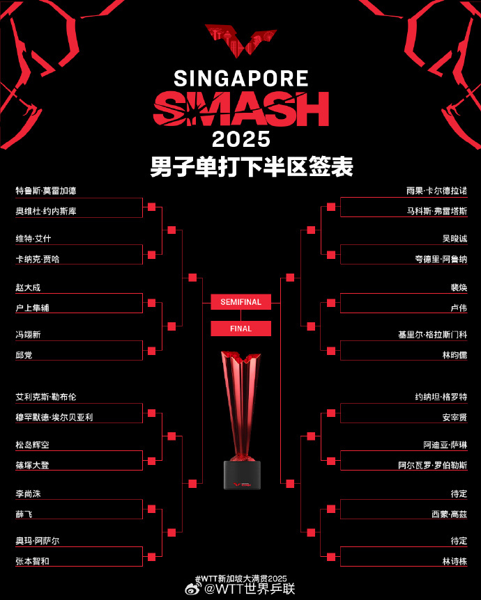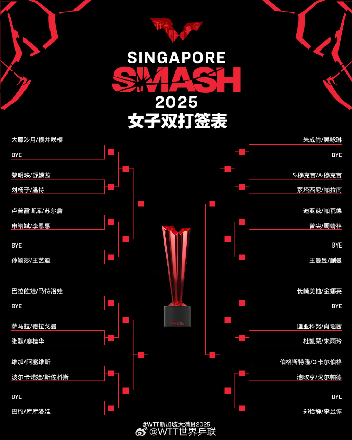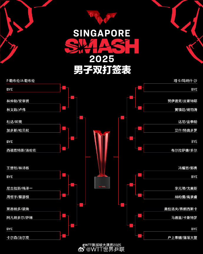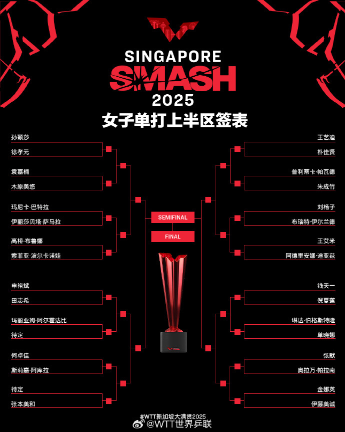WTT新加坡大满贯抽签结果出炉!一起为国乒加油