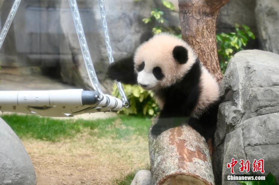 图为大熊猫“家姐”在玩耍。中新网记者李志华摄