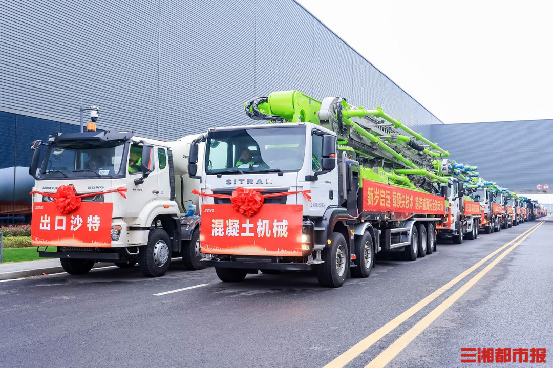 38吨级挖掘机、全球首款载重百吨矿用宽体自卸车ZT160HEV等超1300台、总金额超9亿元的土方机械与矿山机械设备分别从智慧产业城、渭南园区、宁乡园区发往国内各地以及欧洲、东南亚、中东等海外地区,将为全球建设注入强大动力。