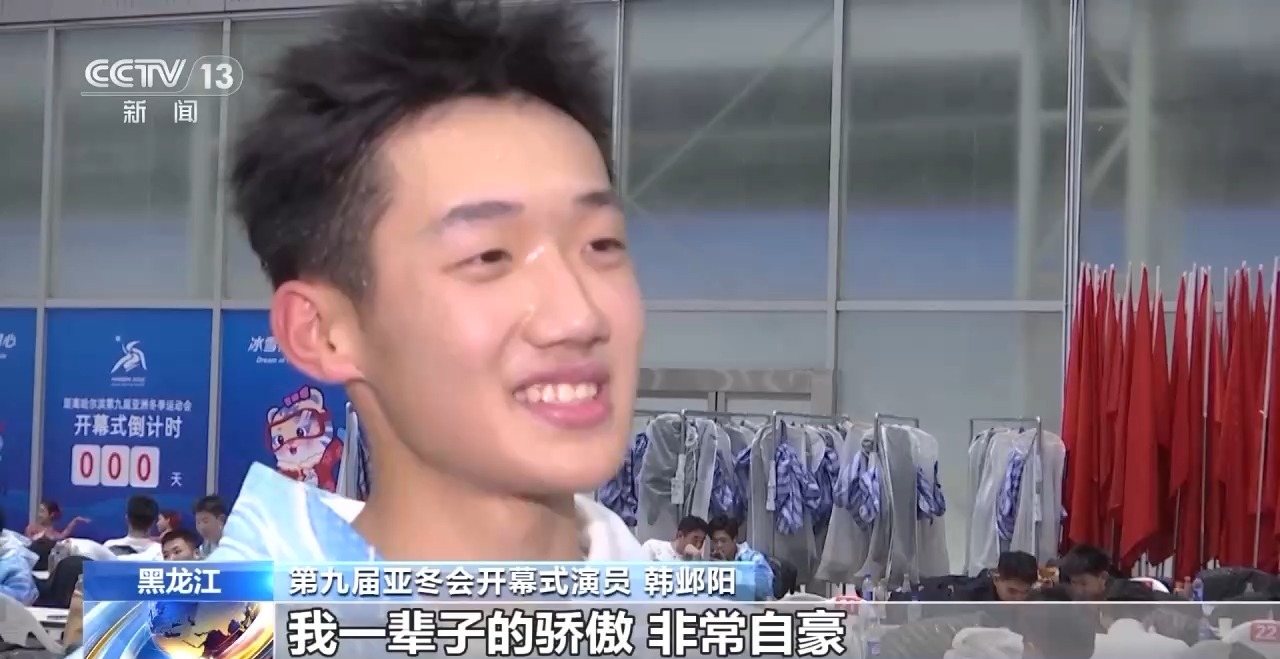 第九届亚冬会开幕式演员韩邺阳:我的内心想法就是我一辈子的骄傲,非常自豪,尤其是到中国国歌响起那一刻简直特别有力量。我们代表了中国,代表中国青少年的形象来出面,就非常骄傲了。