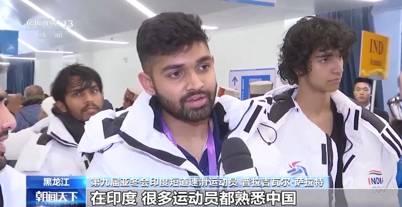 第九届亚冬会印度短道速滑运动员 普拉吉瓦尔•萨拉特:在印度,很多运动员都熟悉中国。亚冬会给了我们展现自己冰雪运动天赋的平台。同时,我们沉浸在浓浓的文化氛围之中,我们也是历史悠久的大国,这个平台让我们能够彼此交流价值理念和传统文化。