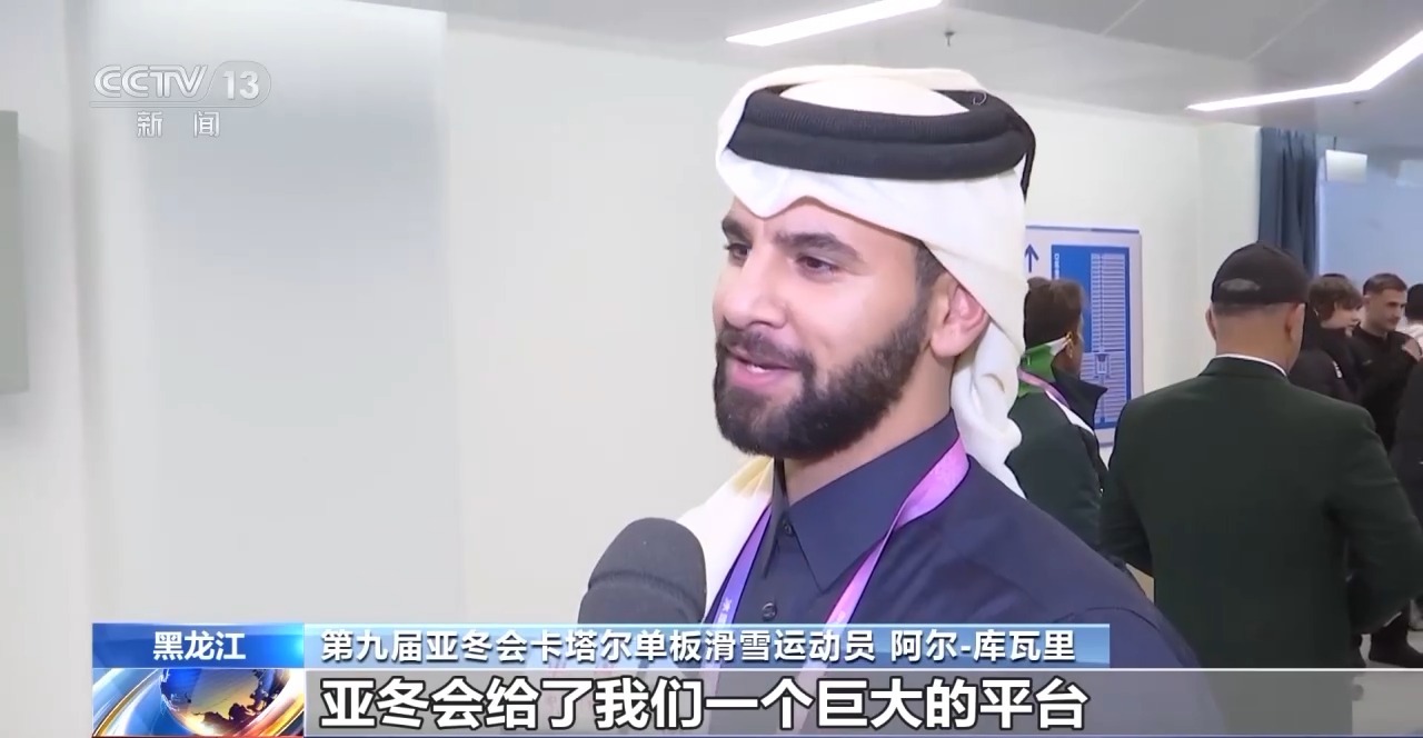 第九届亚冬会卡塔尔单板滑雪运动员阿尔-库瓦里:亚冬会给了我们一个巨大的平台,让所有运动员可以闪耀自我,同时为国争光。亚洲文化有着很强的多样性,亚冬会就是一个很好的平台,让我们彼此文明互鉴。