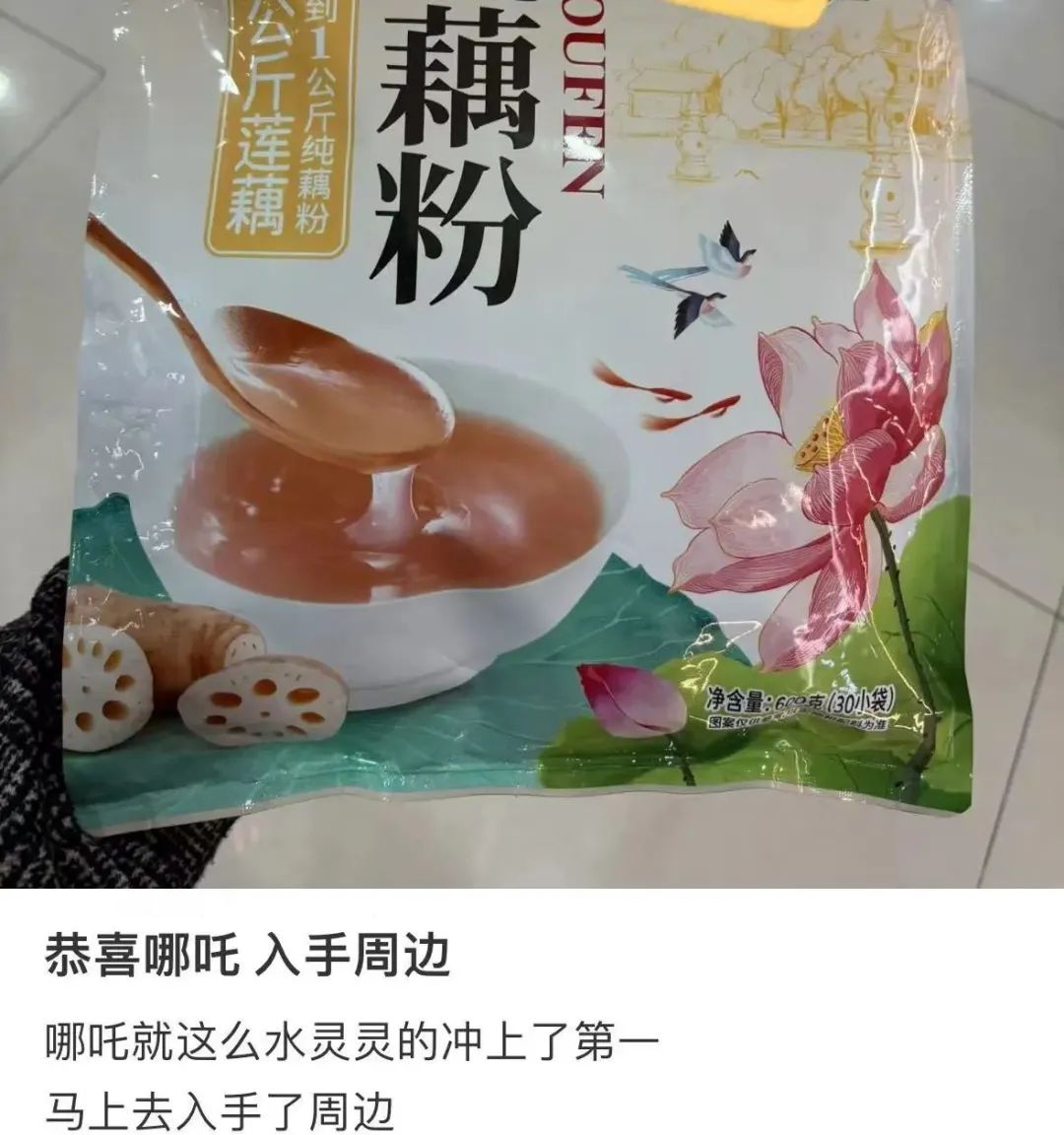 今年春节的“顶流”非哪吒莫属,影片中,太乙真人用藕粉重塑哪吒肉身的片段,让不少人直呼可爱,还有许多网友入手了藕粉“周边”。