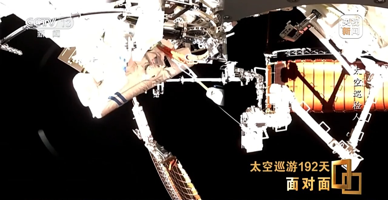 随后,航天员李广苏顺利出舱,他需要沿舱壁自主攀爬,对舱外设备设施进行巡检。