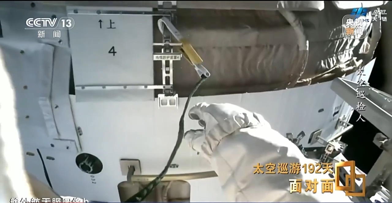 李广苏:当时是爬到第一个转移路径的末端的时候,01在安装防护装置,我是在舱壁上,除了进行舱壁上的设备巡检,还要对他的安装状态进行确认。因为地面他想通过我的这个摄像头看到他想看到的一些信息,但是我在那个位置,因为已经相当于是一个实验舱的末端了,末端那个位置没有太多的扶手可以供我去抓取。