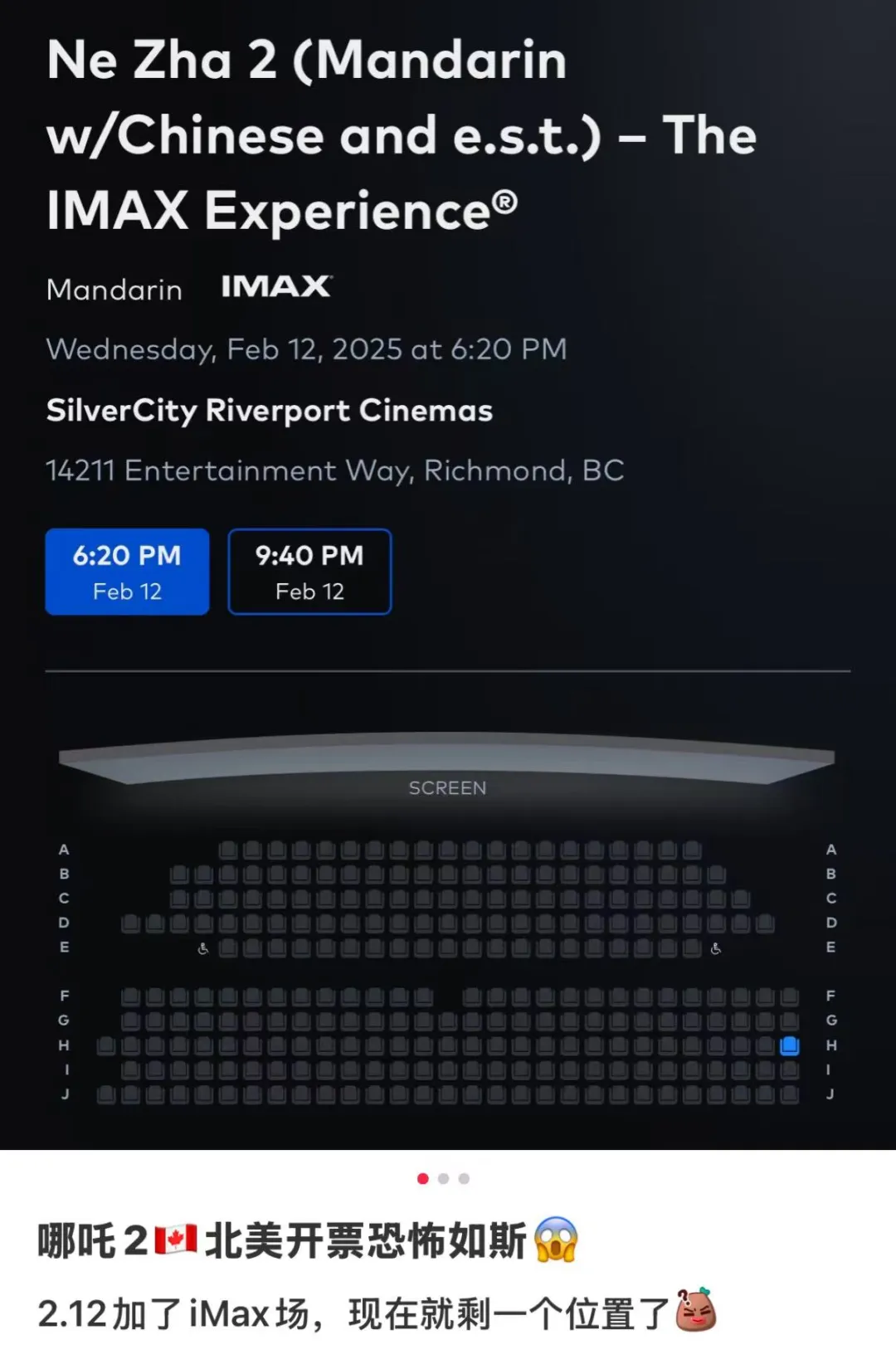 在澳大利亚,《哪吒2》点映预售火爆远超预期。据当地一位华人透露,悉尼首场IMAX场次开票即“秒空”,其未能抢到票后连夜向院线华人影业发邮件呼吁加场。次日,IMAX排片从1场增至3场,悉尼市中心高达65美元(约合人民币460元)的IMAX躺椅票也迅速售罄。