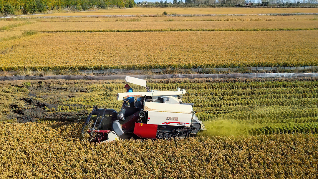 图片介绍:农发行湖南省分行累计投放4.98亿元农村土地流转和土地规模经营贷款,支持桃源县高标准农田建设。图为该行支持的桃源县高标准农田,一幅田成方、地成块、路相连、渠相通的乡村振兴画卷在桃源大地展现。秋收时节,金色农田里农机奔跑、机器轰鸣,粮食作物进入收获期。广袤的田野上,高标准农田建设的成果,正在为这里的乡村美景增添丰收的光彩。