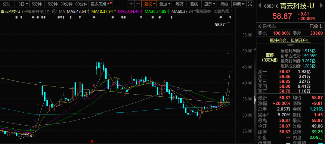 春节后的A股三个交易日里,作为第三方云计算厂商的优刻得和青云科技连收三个一字板。同期北交所并行科技收获两个30CM涨停,首都在线收获两个20CM涨停。