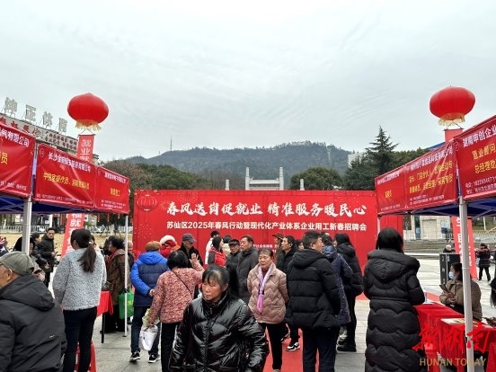 新湖南客户端2月11日讯(通讯员 张文杰 神丽华)人勤春来早,开年即“开跑”。春节后是人才流动高峰期,也是企业开工复产关键时期。2月10日,农历正月十三,由苏仙区人社局主办的“春风送岗促就业 精准服务暖民心”——2025年春风行动暨现代化产业体系企业用工新春招聘会在苏仙福地广场盛大举行。