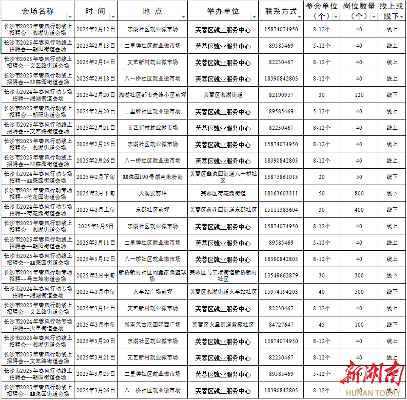 长沙市芙蓉区人社局有关负责人介绍,今年芙蓉区“春风行动”活动持续到3月下旬,共铺排线上线下招聘会28场,其中线下8场,线上20场。