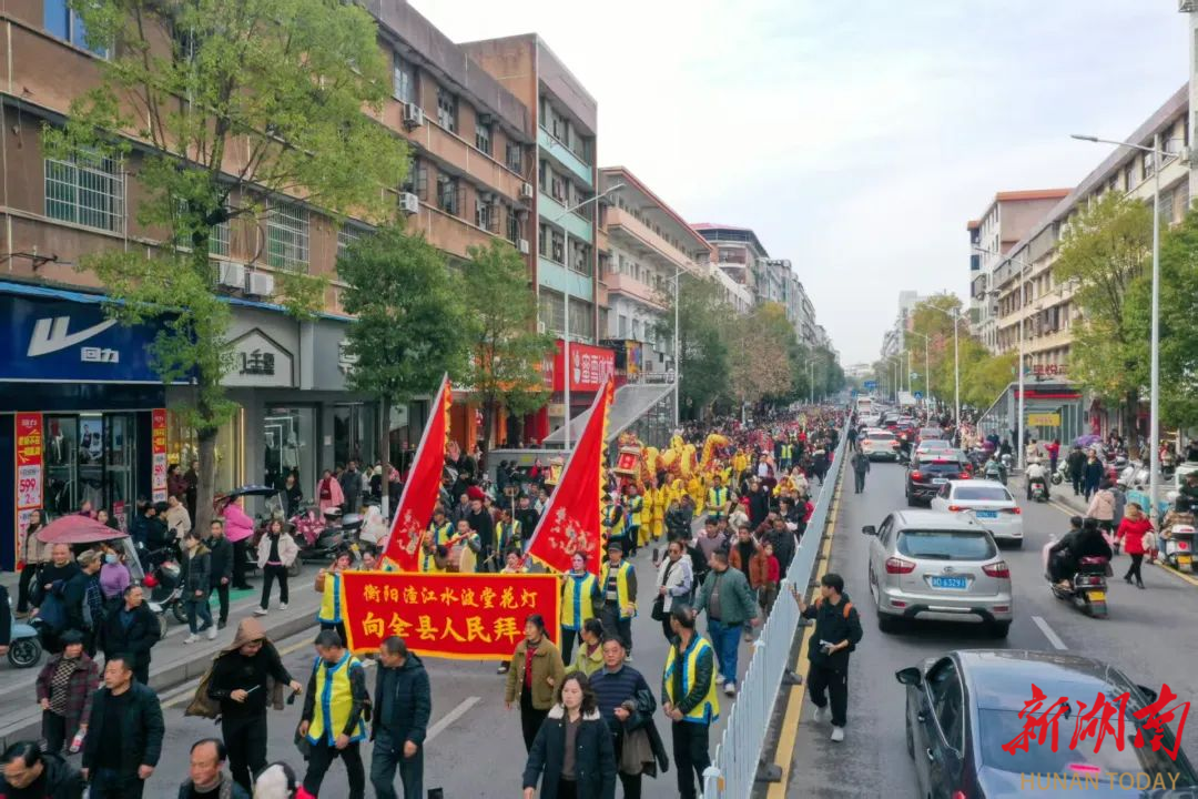湖南日报·新湖南客户端2月12日讯(通讯员 邹健 刘艳姣 摄影 王振南 涂卫红)2月11日,衡阳县城新正街至清江中路两侧人声鼎沸,一场以“渣江花灯”为主题的非遗排街活动正在举行。