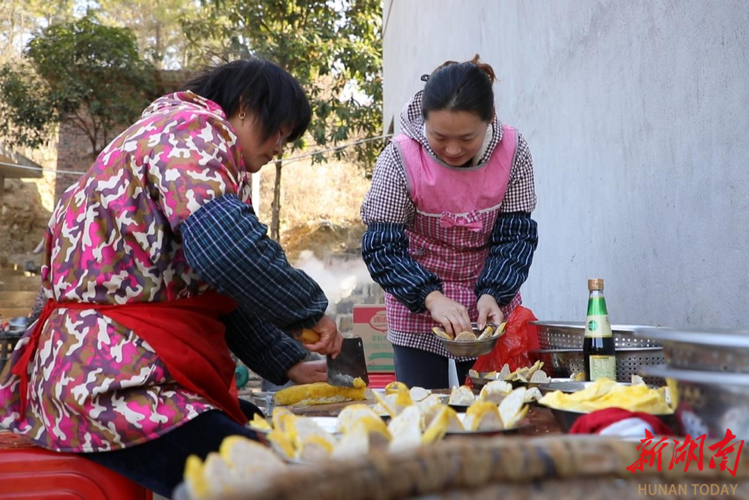 尹仰能原本是一名煤矿工人,下岗后回到了老家双峰县花门镇,重新学一门技艺,成为一名村厨。这些年,他与三代为厨的赵放军组建了一支村厨团队,在当地颇有名气,十分抢手。