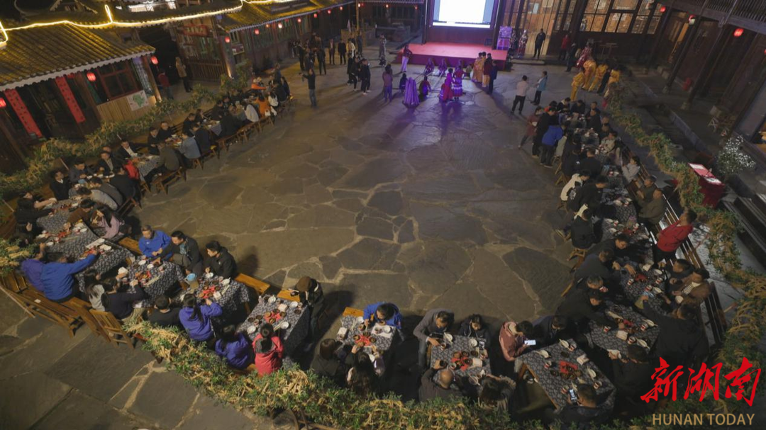 随着奉嘎山文旅产业的蓬勃发展,夜龙宴成了招牌文旅体验项目。被赋予了新内涵的夜龙宴,菜品更偏重于山野特色,民俗体验、山歌表演、茗茶品鉴等文化元素的加入,让游客在一饱口腹的同时,能更好地放松身心、感受愉悦。