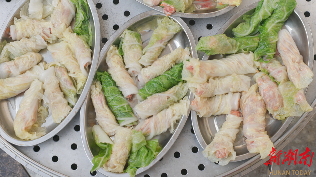 青菜叶包肉、荷折皮煮鱼、红薯坨粉炒豆豉,简单的乡土食材,朴实的加工方法,做出了最地道、最纯净的味道,令县城来的年轻厨师们惊叹不已。