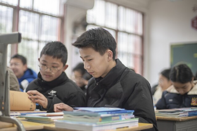 教室窗明几净,崭新的课本排列整齐,同学们脸上洋溢着对新学期的憧憬。八年级学生孔徳棋以前家住团新村,上学需要30分钟。“搬进新家后,步行上学方便多了!”他说,这学期面临生物、地理会考,自己要更加刻苦努力,争取考个好成绩。