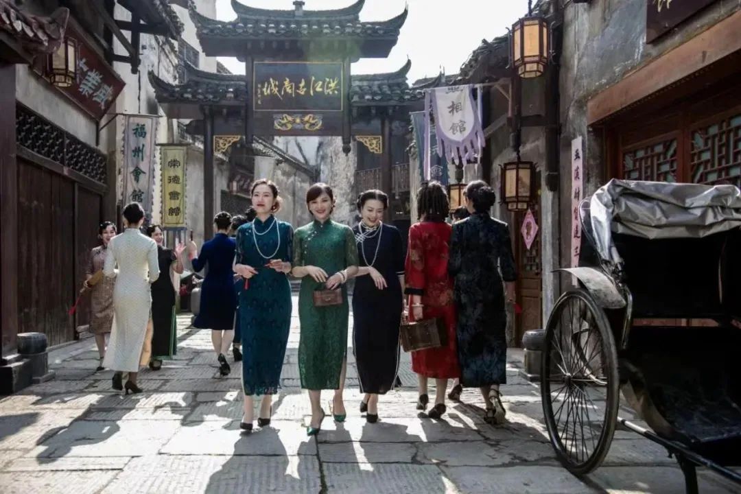 在洪江古商城穿上旗袍