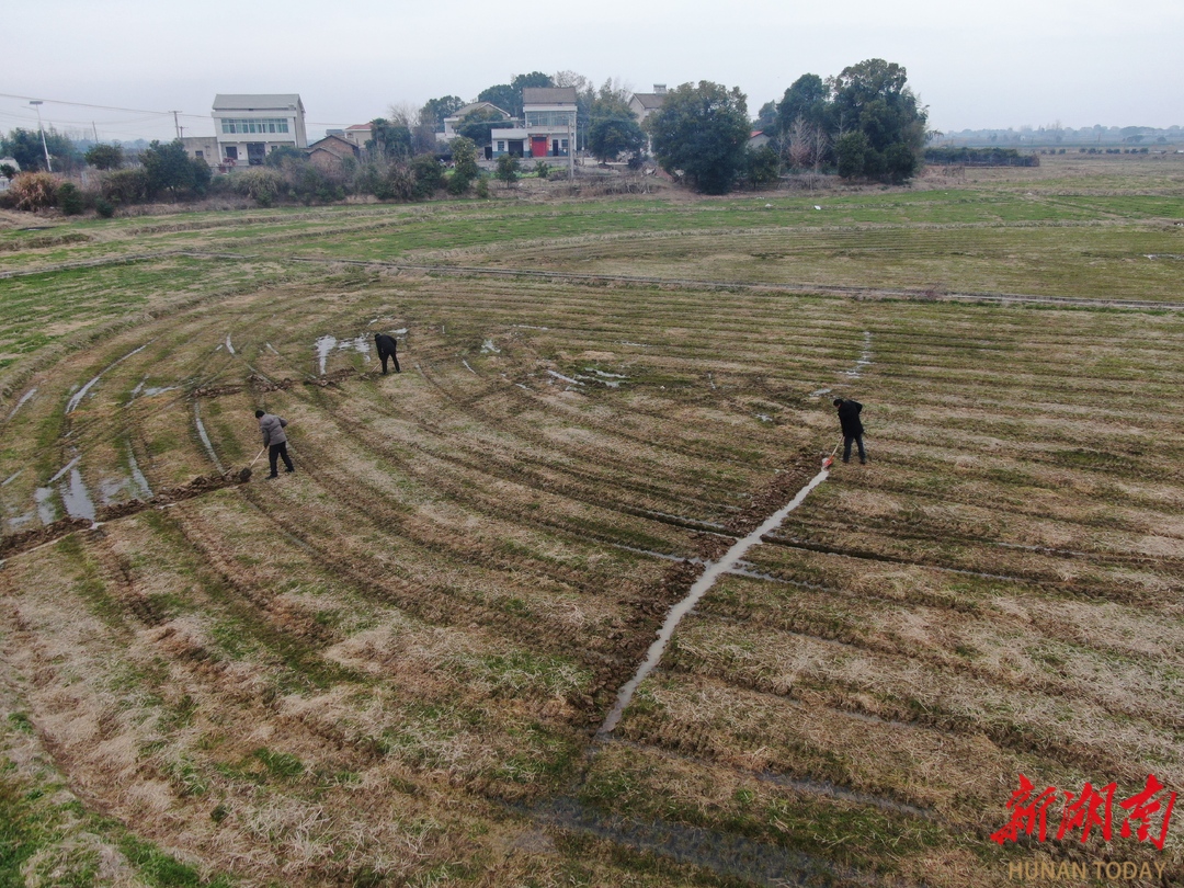 开沟沥水,保障紫云英正常生长。