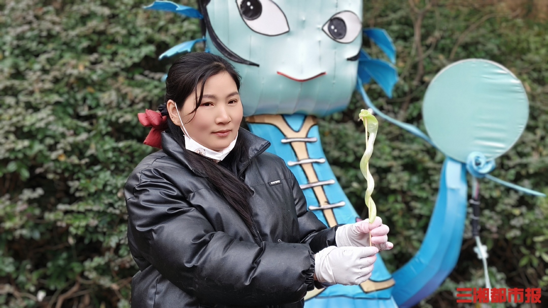 三湘都市报·新湖南客户端2月16日讯(全媒体记者 胡锐)一块糖在吹、拉、压、剪几道工序后,便变成了一条“青蛇”,活灵活现、栩栩如生,全程只仅用时两分钟。2月16日,在长沙南郊公园附近,“80后”吹糖人刘海燕向众人展示着炫酷的吹糖技艺,一群孩子将其团团围住,时不时向身边的家长囔着要买糖蛇。