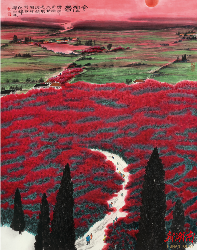 《水入洞庭天正阔》在艺术上不仅传承传统,更在传承中大胆创新。筱非先生的诗文和画作,深深扎根于传统中国文化的土壤,又巧妙融入现代艺术元素,形成独树一帜的艺术风格。 在《江湖交汇磊石山》里,筱非先生引用《水经•湘水注》的记载,描绘出洞庭湖磊石山原是突出于烟波中的一浮山美景。其画作中,洞庭湖若隐若现,磊石山宛如一幅淡雅的水墨画。但他并未受限于传统表现手法,而是融入现代艺术元素,让画面更具层次感与立体感。这种传统与现代的融合,不仅增添作品的艺术魅力,更彰显筱非先生在艺术创作中的创新精神。