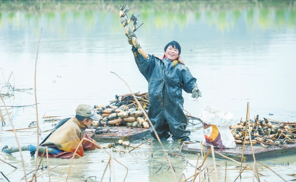 2月18日,娄底经开区大埠桥街道中阳村,藕农在采藕。吴永华 摄(湖南图片库)