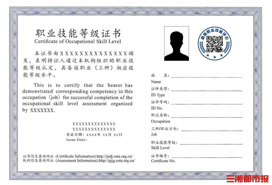 从今年开始,通过统一认定获得的职业技能等级证书可使用寓意“三湘四水、鱼米之乡”的“湖南职业技能评价”标志二维码,扫码即可查看证书详情。