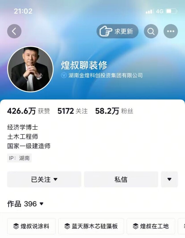 (抖音号“煌叔聊装修”目前有58万余粉丝、400多万获赞。通讯员 提供)