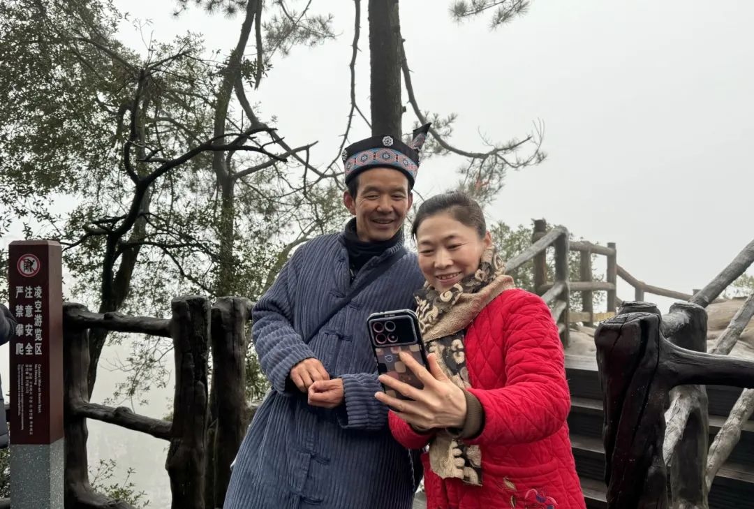 这些天,景区办公室电话成了热线。东北退休教师组团预约,上海白领调休赶来,还有大学生在微博发起#跟着阿见读山水#话题。黄石寨索道公司干脆调整排班表,给这位让山水开口说话的网红安排更多讲解场次。