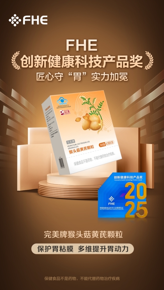完美牌猴头菇黄芪颗粒凭借其卓越的技术创新性,科学组方功效,荣获大会颁发“创新健康科技产品奖”,该奖项由国际食品科学院院士教授罗云波为完美公司颁发,是对完美公司产品创新能力和产品质量的高度认可。