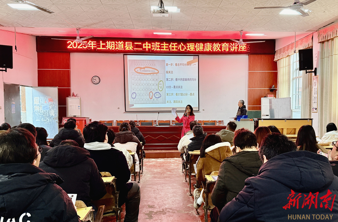 科教新报·新湖南客户端讯(通讯员 蒋正争 蒋佳琳)2月24日至25日,道县第二中学开展“关注心理健康,共筑成长蓝天”心理健康教育活动,进一步提升学生心理健康意识,同时赋能班主任精准识别学生心理异常,为学生健康成长提供全方位心理健康支持。