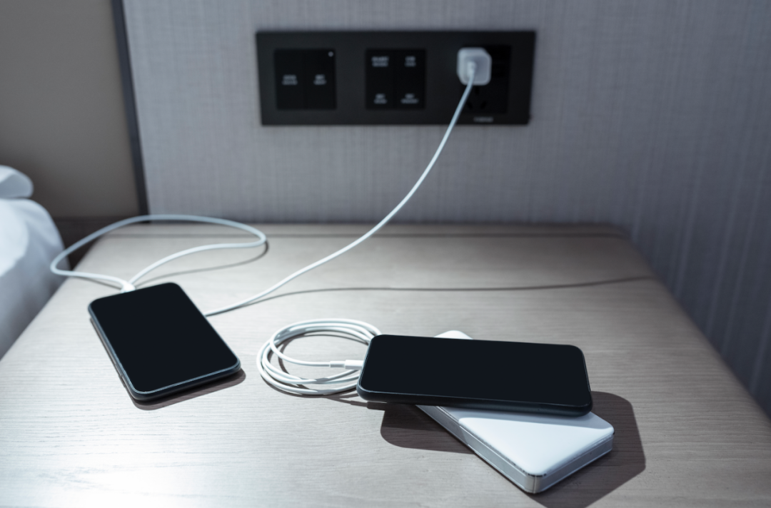有些小伙伴还有个习惯,喜欢晚上睡觉前把手机放在床头充一整晚的电,或者边充边玩,这都是非常危险的↓
