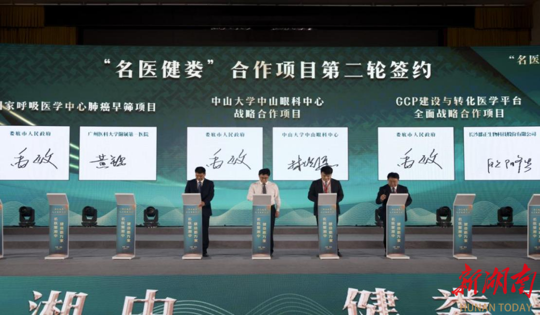 (2024年3月30日,娄底召开“名医健娄”人才发展大会,与深圳市老年医学研究所、中山大学中山眼科中心等签约12项重点医疗项目,与461名医卫高层次人才达成合作意向。)
