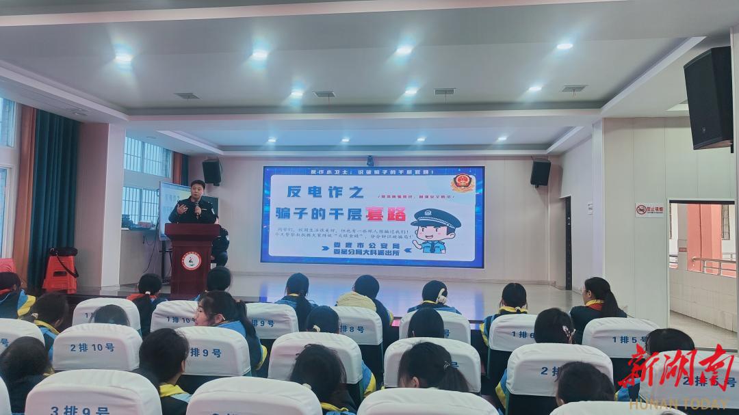 科教新报·新湖南客户端讯(通讯员 雷杰 刘琼)近日,娄底市公安局娄星分局大科派出所联合学校开展“反诈知识进校园,守护童心共成长”主题宣讲活动。派出所民警通过专题讲座、互动问答、情景模拟等形式,为全校师生上了一堂生动实用的反电诈安全教育课。