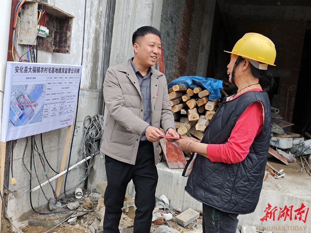 记者在安化县多个乡镇的村民在建房现场看到当地政府设置的农村宅基地建房监管公示牌,勘测定界示意卫星图、房主基本信息、建房类型、规划许可证号、农村宅基地批准书号等信息以及网格田长、驻村工作组、镇级监管责任人姓名、电话均公开,村民在建房过程中有任何问题可在第一时间找到人反映。