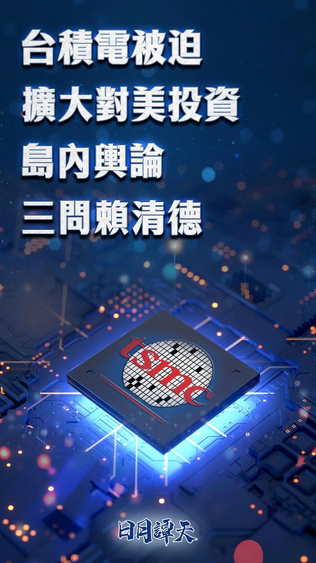 谭主注意到,民进党当局外事部门负责人林佳龙日前受访时刻意说,台积电最初决定赴美投资,就是在美国现任总统第一个任期内。岛内专家告诉谭主,事实上,民进党当局是逼迫台积电在美设厂的最大“帮凶”。台积电创办人张忠谋曾公开表示在美国生产芯片成本高、人才缺,“昂贵浪费又白忙一场”,赴美设厂是“在美国政府的敦促下这样做的”。民进党当局配合施压,孤立无援的台积电被迫不断扩大在美投资。