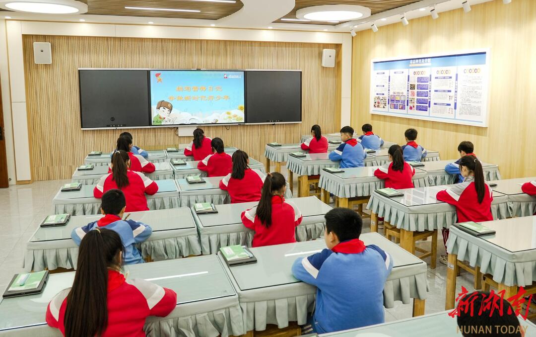雷锋小学教育集团总校长、雷锋新城实验小学党总支书记刘丰华介绍,2021年以来,雷锋新城实验小学在全国首批开设基础教育网络联校服务,为宁乡等地的镇小、村小,送去音乐、美术、英语、心理等特色课程,每周5节课以上。