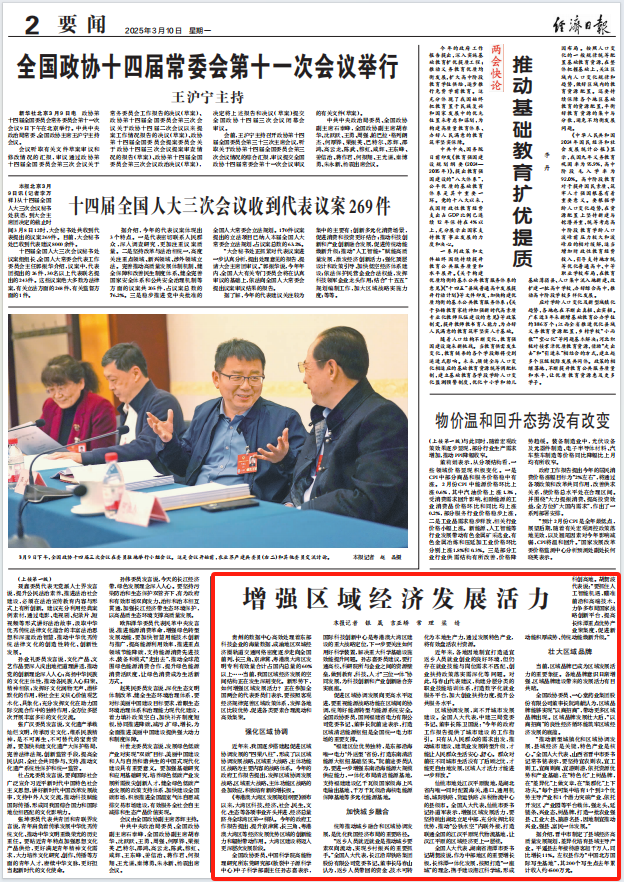 贵州的数据中心高效处理着东部科技企业的海量数据,成渝地区双城经济圈轨道交通网络密度逐步走向全国前列,长三角、京津冀、粤港澳大湾区发明专利有效量合计占国内总量的60%以上……当前,我国区域经济发展的空间结构正在发生深刻变化。新形势下,如何增强区域发展活力?正在参加全国两会的代表委员们表示,要按照客观经济规律完善区域政策体系,发挥各地区比较优势,促进各类要素合理流动和高效集聚。