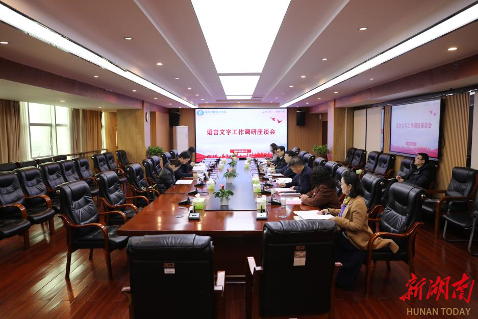 3月11日,湖南省语言文字培训测试中心主任余伟新一行来湖南财政经济学院调研语言文字工作。湖南财院党委书记易棉阳主持座谈会,副校长潘爱民,党政办、教务处、人文与艺术学院、外国语学院主要负责人参与座谈。