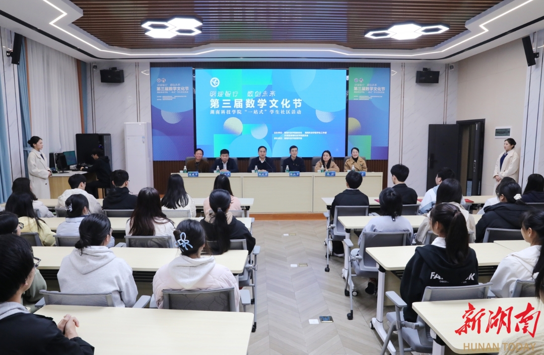 湖南日报·新湖南客户端3月15日讯(通讯员 黄欣欣 向薛峰)3月14日,正值国际数学日,湖南科技学院在明理楼101举行“一站式”学生社区活动“明理智行 数创未来”第三届数学文化节开幕式。湖南科技学院党委副书记、校长黄创霞,党委委员、纪委书记陈灿军出席仪式,学生工作部部长谷利民,教务处处长张剑,理学院院长唐耀平参加仪式,仪式由理学院党总支书记刘华主持。