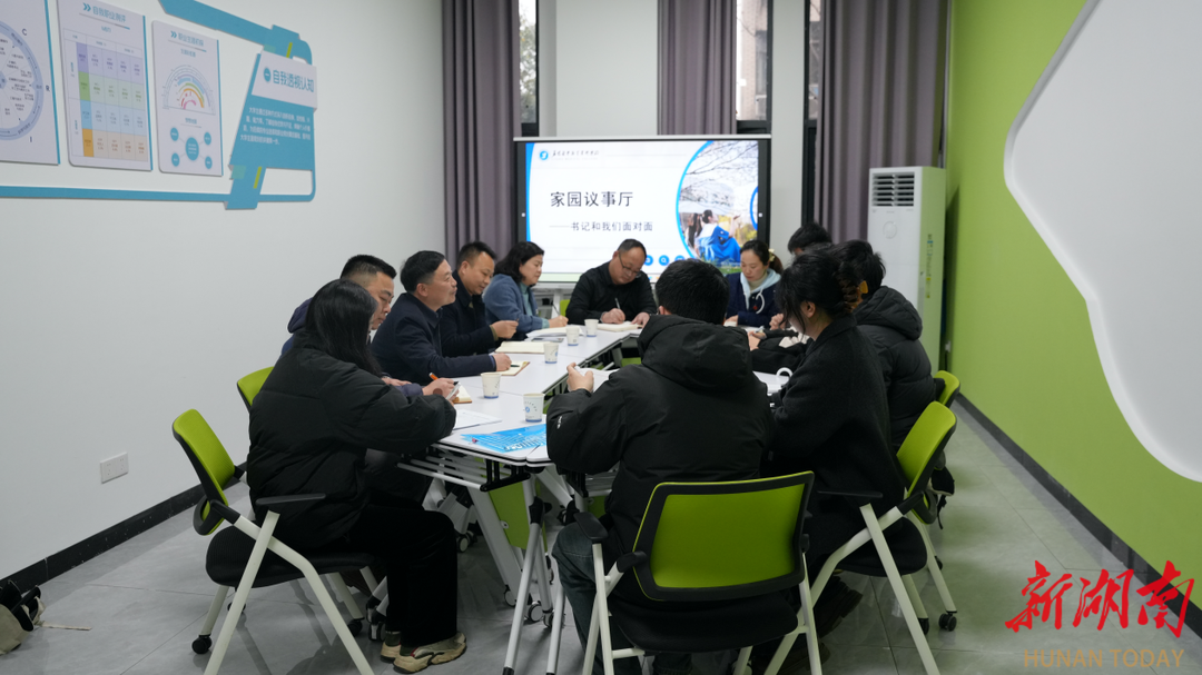 3月14日,益阳医学高等专科学校“一站式”学生社区服务中心里,青绿色的座椅围成同心圆,党委书记周奎,党委委员、副校长喻文辉与来自5个学院的7名学生代表围坐畅谈。这场名为“家园议事厅”的特殊对话,让春季的校园里激荡着民主治校的清新之风。