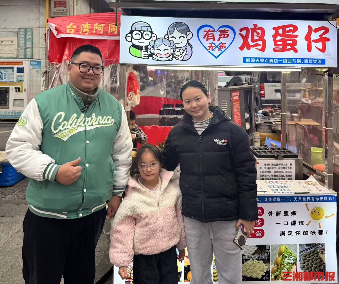 湛靖雯笑着告诉记者,2024年4月,夫妻俩将“无声鸡蛋仔”的招牌换成了“有声鸡蛋仔”,其中“有声”两个字还特别用爱心圈了出来,“看着这两个字,我们就感觉温暖,不会忘记那些帮助我们的人。”