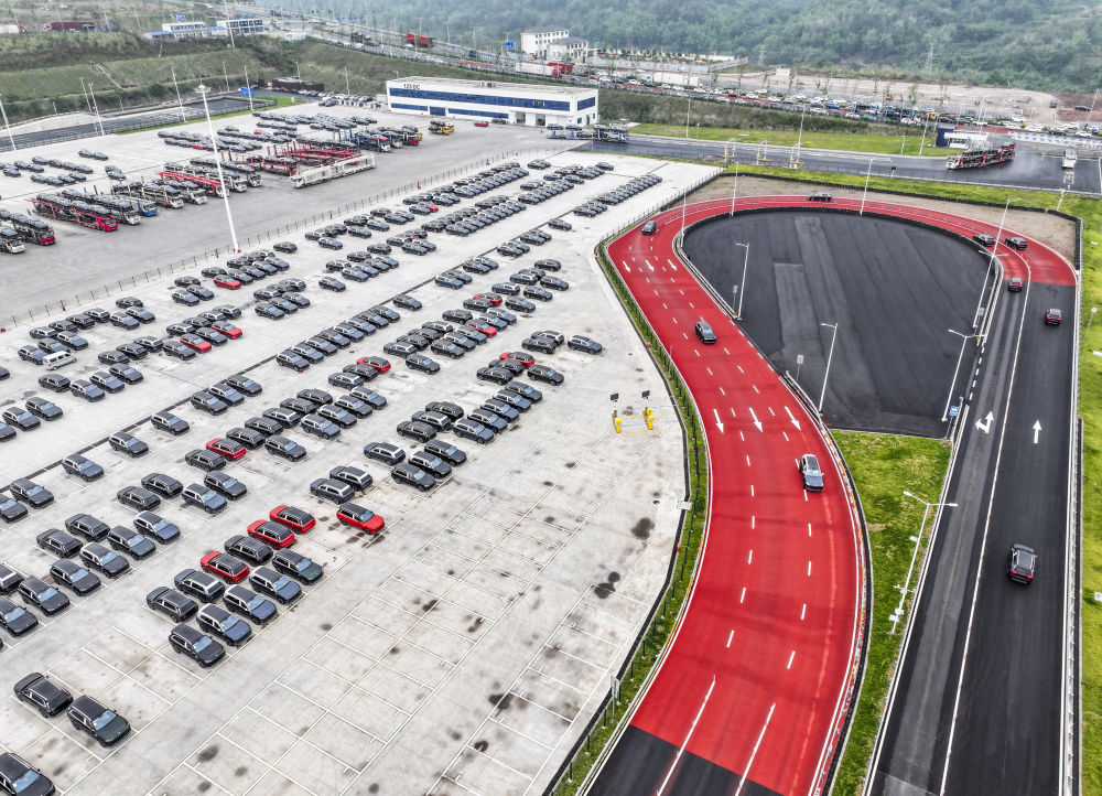 2024年11月6日在位于重庆市两江新区的赛力斯超级工厂拍摄的新能源汽车(无人机照片)。新华社记者 王全超 摄按年限阶梯式分配,有序调控指标——