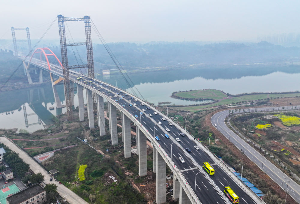 3月20日,车辆行驶在重庆潼南东升大桥上(无人机照片)。新华社记者 王全超 摄从简单限购到推进购车指标精细化差异化管理,“购车难”在动态校准中迎来逐步破题。但增发购车指标、放宽汽车限购,是否会加剧城市交通拥堵?