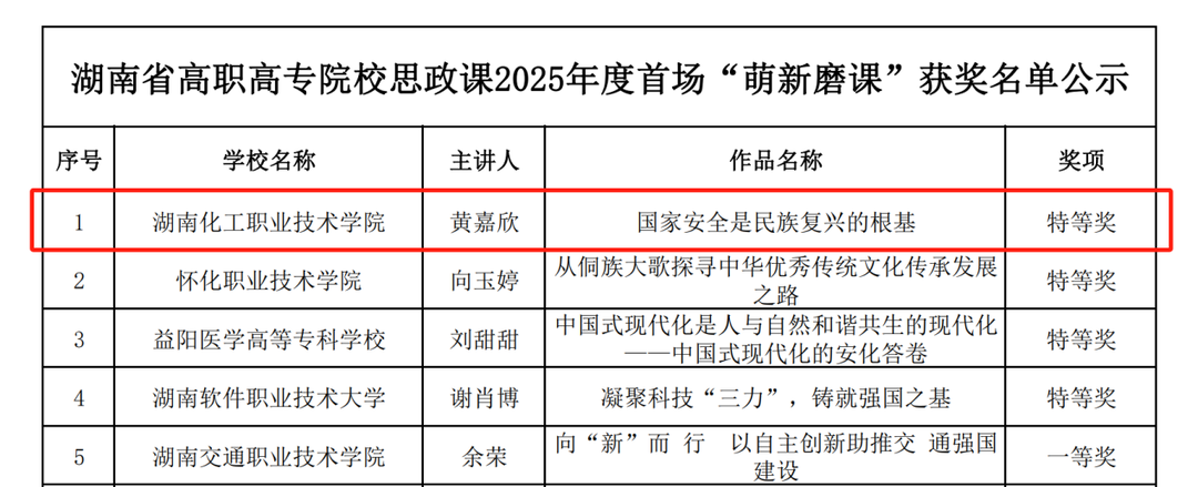 湖南化工职业技术学院马克思主义学院在湖南省高职高专院校思政课2025年度首场“萌新磨课、骨干练兵”比赛中喜获佳绩